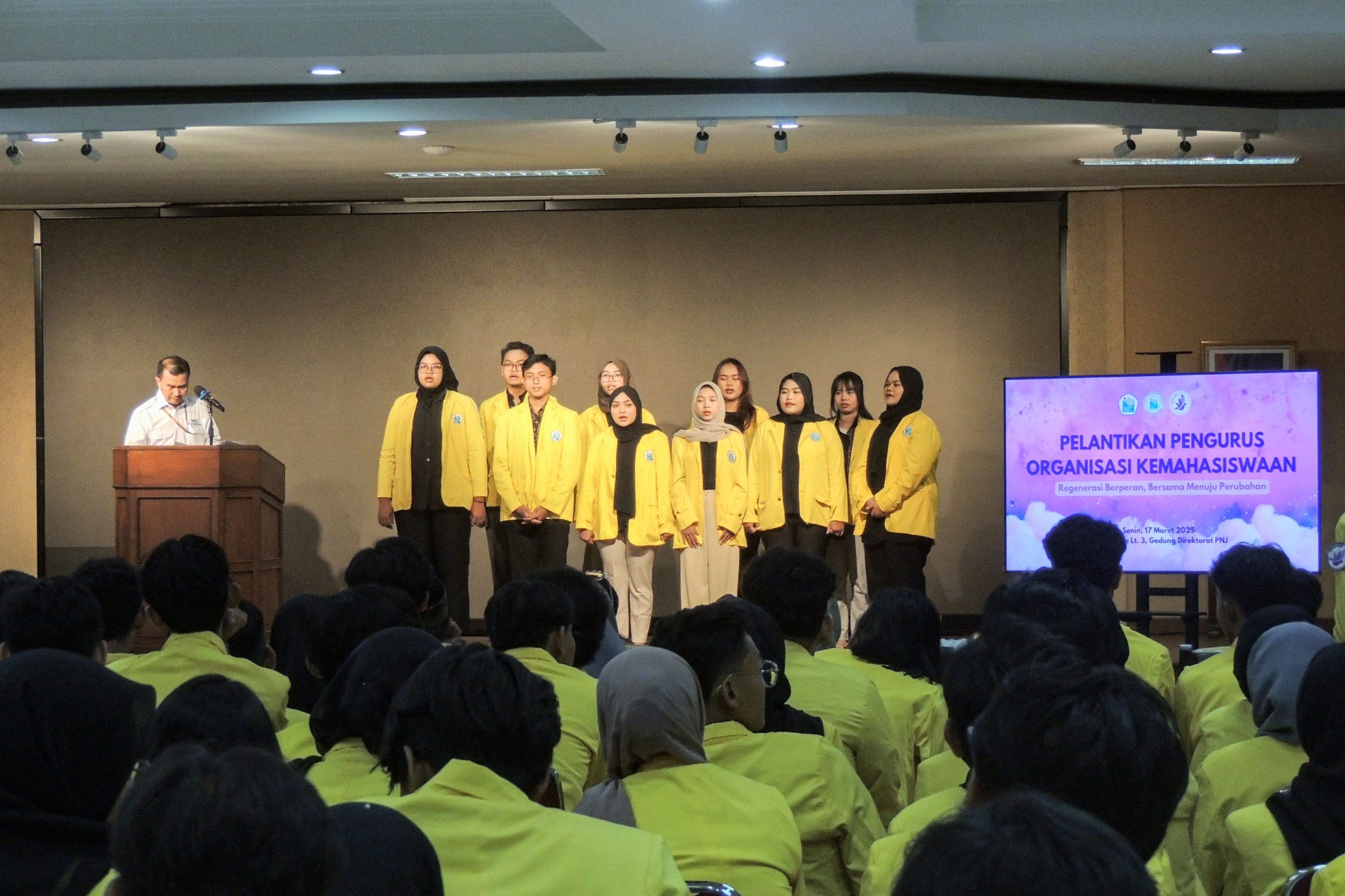 GEMAGAZINE – Pelantikan Pengurus Organisasi Kemahasiswaan (PPOK) 2025 berlangsung sukses. Acara ini diselenggarakan di Ruang Aula Lantai 3, Gedung Direktorat Politeknik Negeri Jakarta pada Senin (17/03/2025). Kegiatan ini dihadiri oleh 181 mahasiswa yang berasal dari Majelis Permusyawaratan Mahasiswa, Badan Eksekutif Mahasiswa, Himpunan Mahasiswa Jurusan, Unit Kegiatan Mahasiswa, Kelompok Studi Mahasiswa, dan Badan Otonom. PPOK 2025 mengusung tema “Regenerasi Berperan Bersama Menuju Perubahan”. Kegiatan ini diharapkan dapat memotivasi seluruh Organisasi Mahasiswa (Ormawa) di PNJ untuk percaya bahwa mereka memiliki peran penting dalam mewujudkan perubahan menuju kampus yang lebih baik. Ketua BEM yang baru saja dilantik, Ningrum Mauris, turut menyampaikan pendapatnya pada…